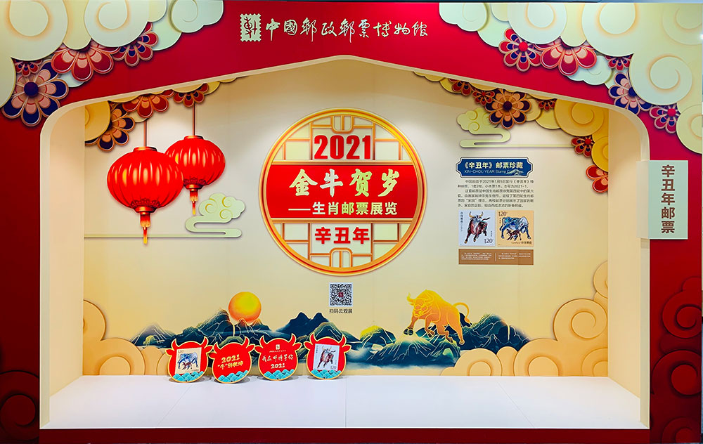 農(nóng)歷辛丑牛年來臨之際,中國郵政于2021年1月5日發(fā)行志號為2021-1的《辛丑年》特種郵票1套2枚,小本票1本。為配合郵票首發(fā),營造新春喜慶祥和的氛圍,由中國郵政集團(tuán)有限公司主辦、中國郵政文史中心(中國郵政郵票博物館)承辦的“金牛賀歲——2021辛丑年生肖郵票展覽”于2021年1月5日在中國郵政郵票博物館開幕。展覽展出中華人民共和國郵政、中華人民共和國香港特別行政區(qū)和中華人民共和國澳門特別行政區(qū)發(fā)行的生肖郵票,用郵票展示傳統(tǒng)生肖民俗,弘揚(yáng)中華優(yōu)秀傳統(tǒng)文化。