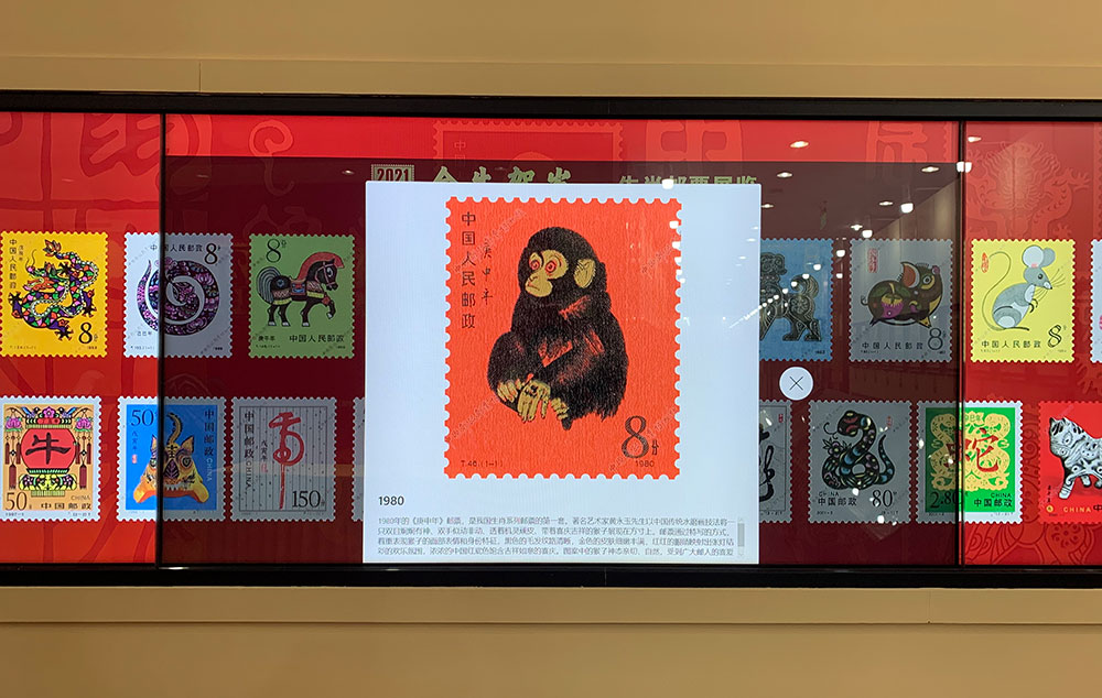 本次展覽按發(fā)行時間順序展出四輪生肖郵票“全家?!?,采用郵票實(shí)物與高清放大圖展示相結(jié)合的方式,回顧中國生肖郵票從開創(chuàng)先河到不斷推陳出新的“美的歷程”。