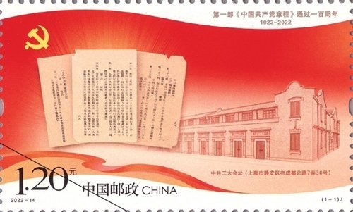 7月23日,《第一部<中國共產(chǎn)黨章程>通過一百周年》紀念郵票將發(fā)行。該套郵票一套1枚,全套面值為1.20元,計劃發(fā)行680萬套。