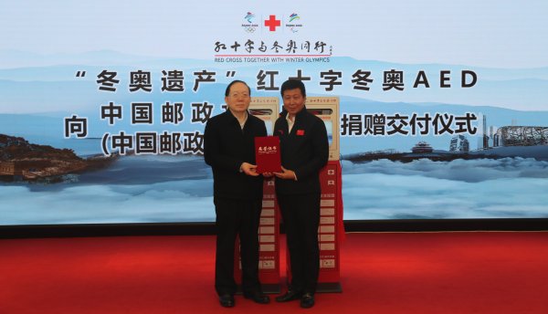 北京冬奧組委運動會服務部聯(lián)合中國紅十字會總會事業(yè)發(fā)展中心向中國郵政文史中心(中國郵政郵票博物館)捐贈交付2套紅十字冬奧AED設備(自動體外除顫儀)。