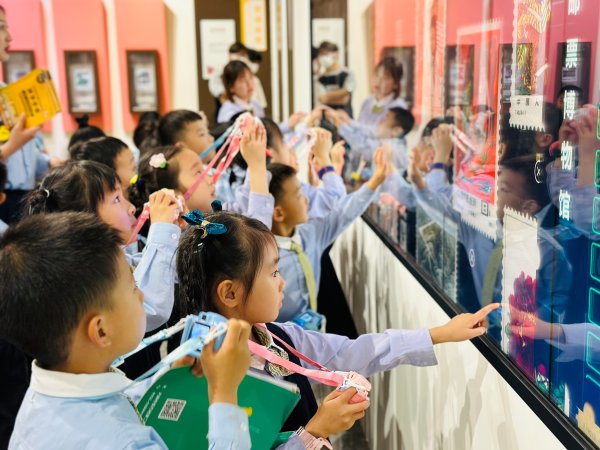 在講解員老師的帶領(lǐng)下,孩子們的郵博一日研學(xué)之旅正式開啟。從中國的第一枚郵票大龍郵票到世界第一枚郵票黑便士郵票,從漢代畫像磚上的驛使圖到現(xiàn)代的郵運工具自行車、摩托車,從多姿多彩的生肖郵票到異形異質(zhì)的外國郵票,孩子們穿行于展廳之中,看得目不暇接,在方寸海洋中盡情遨游。