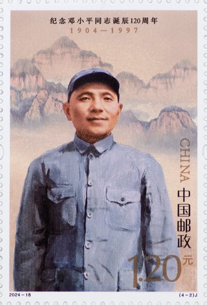 中國(guó)郵政定于2024年8月22日發(fā)行《紀(jì)念鄧小平同志誕辰120周年》紀(jì)念郵票1套4枚,郵票圖案名稱為:1.勤工儉學(xué);2.戎馬歲月;3.科學(xué)春天;4.改革開(kāi)放。全套郵票面值4.80元,計(jì)劃發(fā)行數(shù)量套票700萬(wàn)套,版式二88萬(wàn)版。