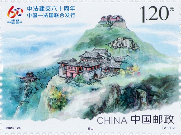 中國郵政定于2024年10月18日發(fā)行《中法建交六十周年》(與法國聯(lián)合發(fā)行)紀(jì)念郵票1套2枚,郵票圖案名稱為1.泰山;2.圣米歇爾山。全套郵票面值2.40元。郵票計劃發(fā)行數(shù)量為600萬套。