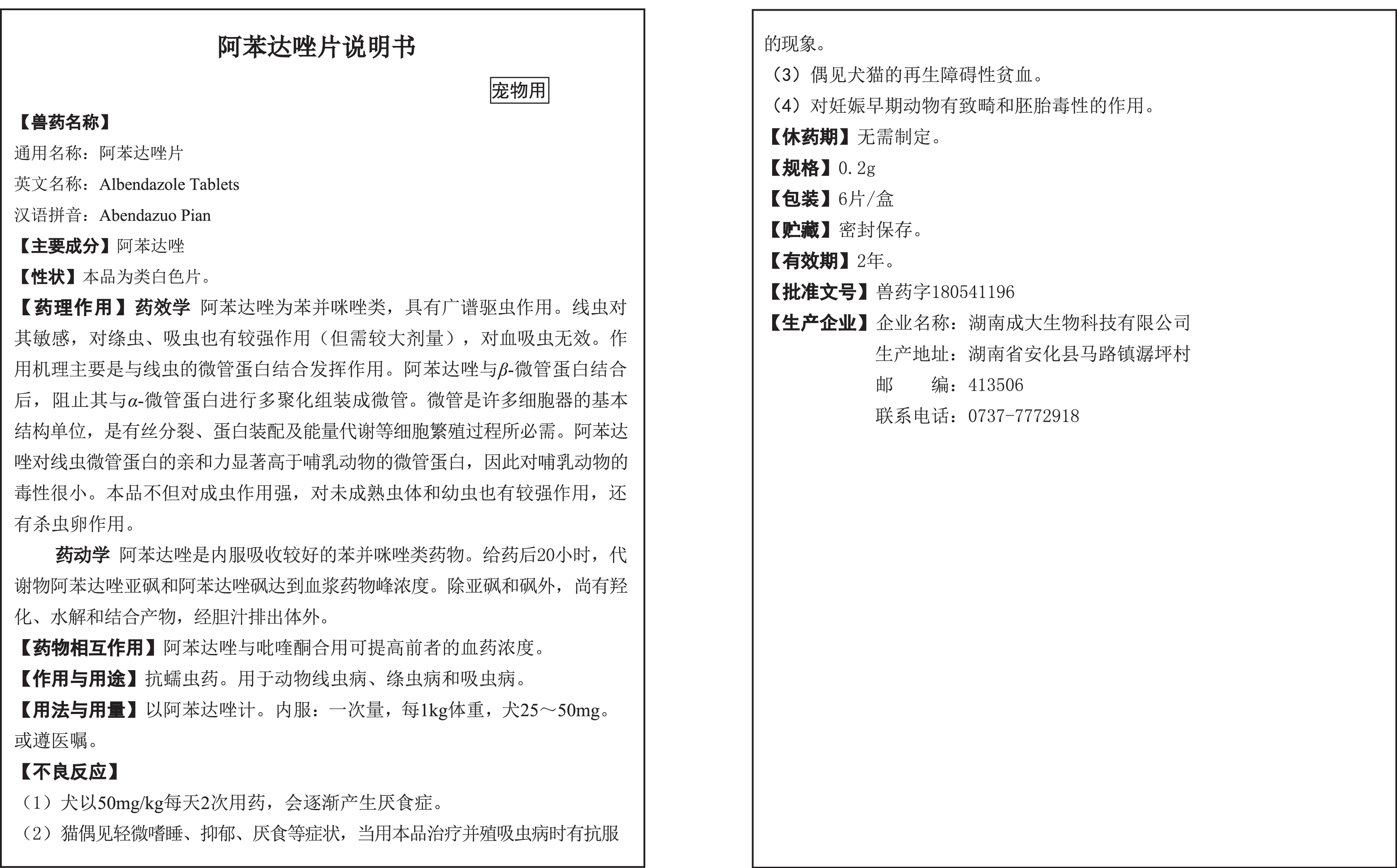 貓用阿苯達唑片