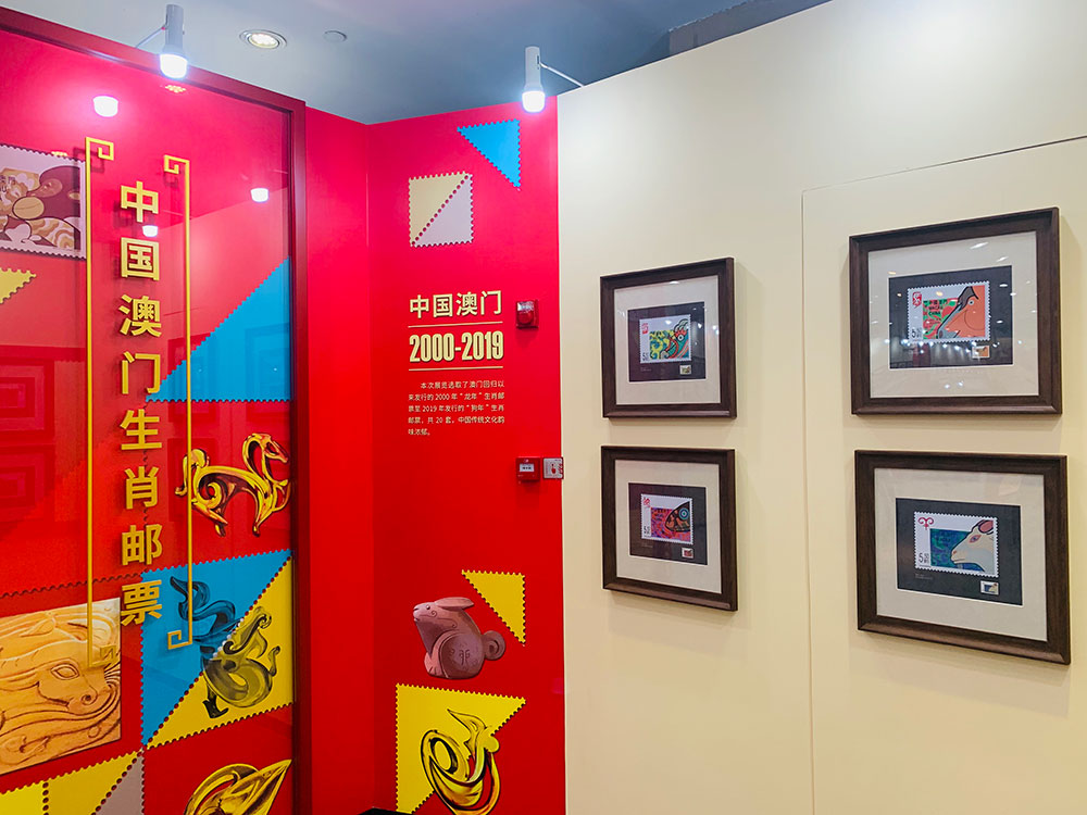 本次展覽還選取了香港回歸以來發(fā)行的1998年“歲次戊寅”(虎年)至2019年發(fā)行的“歲次己亥”(豬年)生肖郵票,共22套,烘托出春節(jié)喜慶氣氛;選取澳門回歸以來發(fā)行的2000年“龍年”生肖郵票至2019年發(fā)行的“狗年”生肖郵票,共20套,展現(xiàn)濃郁的中國傳統(tǒng)文化韻味。