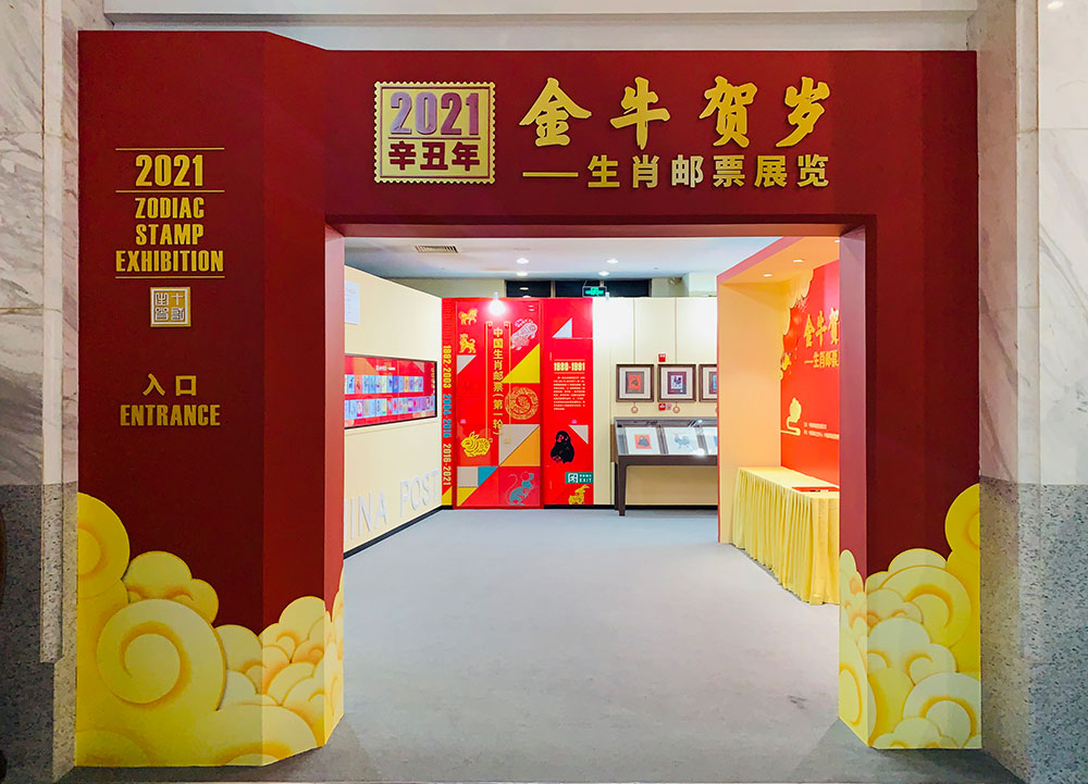農(nóng)歷辛丑牛年來臨之際,中國郵政于2021年1月5日發(fā)行志號為2021-1的《辛丑年》特種郵票1套2枚,小本票1本。為配合郵票首發(fā),營造新春喜慶祥和的氛圍,由中國郵政集團(tuán)有限公司主辦、中國郵政文史中心(中國郵政郵票博物館)承辦的“金牛賀歲——2021辛丑年生肖郵票展覽”于2021年1月5日在中國郵政郵票博物館開幕。展覽展出中華人民共和國郵政、中華人民共和國香港特別行政區(qū)和中華人民共和國澳門特別行政區(qū)發(fā)行的生肖郵票,用郵票展示傳統(tǒng)生肖民俗,弘揚(yáng)中華優(yōu)秀傳統(tǒng)文化。