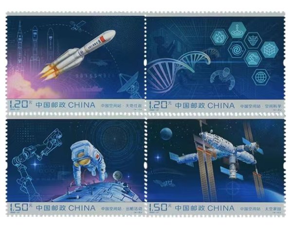 《中國(guó)空間站》郵票采用多色膠印方式,并結(jié)合專色油墨、全真彩、冷燙等印刷工藝,將本套郵票的畫面感、科技感、美感、氛圍感以及趣味性在細(xì)小處、在方寸間精妙呈現(xiàn),設(shè)計(jì)和印制可謂精益求精。
