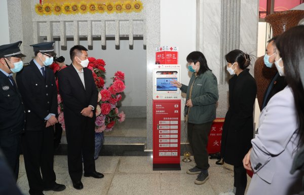 AED設備第一時間安裝到博物館一層大廳,紅十字會工作人員為現(xiàn)場員工講解。
