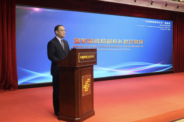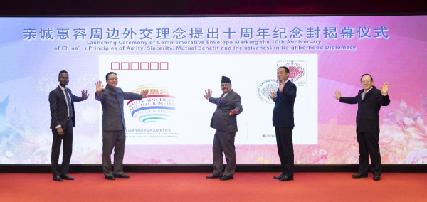 10月20日,“一枚郵票看周邊外交”座談會(huì)在中國郵政郵票博物館舉辦。中國外交部亞洲司司長劉勁松、中國國家郵政局副局長趙民、中國郵政郵票博物館館長張力揚(yáng),尼泊爾駐華大使比什努·施雷斯塔、馬來西亞駐華使館臨時(shí)代辦尚慕甘、日本駐華使館公使小泉勉等來自周邊15國的駐華使節(jié)和外交官及媒體代表70余人出席。與會(huì)代表為親誠惠容周邊外交理念提出十周年紀(jì)念封揭幕。