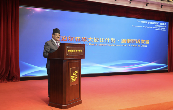 施雷斯塔在致辭中展示了尼泊爾郵政發(fā)行的《尼中建交60周年》郵票,表示尼中是親密朋友、值得信賴的鄰居和可靠的發(fā)展伙伴,兩國關(guān)系歷史悠久,建立在互信、友好、睦鄰的堅(jiān)實(shí)基礎(chǔ)上。尼方贊賞中方提出的“一帶一路”倡議、全球發(fā)展倡議、高質(zhì)量發(fā)展和中國式現(xiàn)代化理念等。尼方高度重視對華關(guān)系,將與中國休戚與共、共同繁榮、合作共贏。