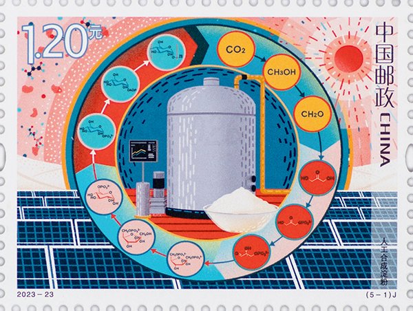 郵票展現(xiàn)了我國五項(xiàng)科技創(chuàng)新成就。中國科學(xué)院天津工業(yè)生物技術(shù)研究所科研人員在淀粉人工合成方面取得重大突破性進(jìn)展,在國際上首次不依賴植物光合作用實(shí)現(xiàn)了二氧化碳到淀粉的從頭合成。多年生稻是水稻育種的一項(xiàng)創(chuàng)新,只需栽種一次,就可連續(xù)收割兩季或通過越冬后收割幾年,極大地減少了勞動(dòng)力投入,并且產(chǎn)量保持相對(duì)穩(wěn)定,實(shí)現(xiàn)了水稻的輕簡(jiǎn)化生產(chǎn)?!白H谔?hào)”是世界上首個(gè)采用主動(dòng)懸架移動(dòng)系統(tǒng)的火星車,不僅能夠承受火星復(fù)雜環(huán)境,還可以進(jìn)行科學(xué)探測(cè),深化了人們對(duì)于火星演化、地下水/冰分布等關(guān)鍵科學(xué)問題的認(rèn)識(shí)?!翱涓敢惶?hào)”是由中國太陽物理學(xué)家自主提出的綜合性太陽探測(cè)專用衛(wèi)星,實(shí)現(xiàn)了我國天基太陽探測(cè)衛(wèi)星跨越式突破,開啟了我國綜合性太陽空間觀測(cè)的新時(shí)代。高海拔宇宙線觀測(cè)站(LHAASO)是我國自主提出,并設(shè)計(jì)、建造的新一代伽馬射線望遠(yuǎn)鏡和宇宙線探測(cè)裝置,它具備前所未有的伽馬射線探測(cè)靈敏度。該裝置致力于探索宇宙線起源之謎,并通過觀測(cè)宇宙線探索更多宇宙奧秘。
