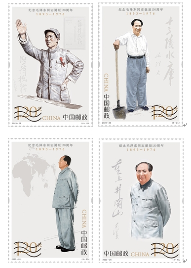 今年是中國(guó)共產(chǎn)黨、中國(guó)人民解放軍、中華人民共和國(guó)的主要締造者,中國(guó)各族人民的偉大領(lǐng)袖毛澤東同志誕辰130周年。中國(guó)郵政定于2023年12月26日發(fā)行《紀(jì)念毛澤東同志誕辰130周年》紀(jì)念郵票1套4枚,郵票圖案名稱分別為堅(jiān)持抗戰(zhàn)、建設(shè)十三陵水庫(kù)、胸懷天下、重上井岡山。