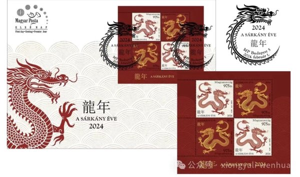 匈牙利郵政局Magyar Posta 發(fā)行的龍年郵票四方連及首日封