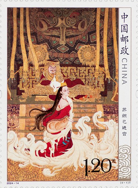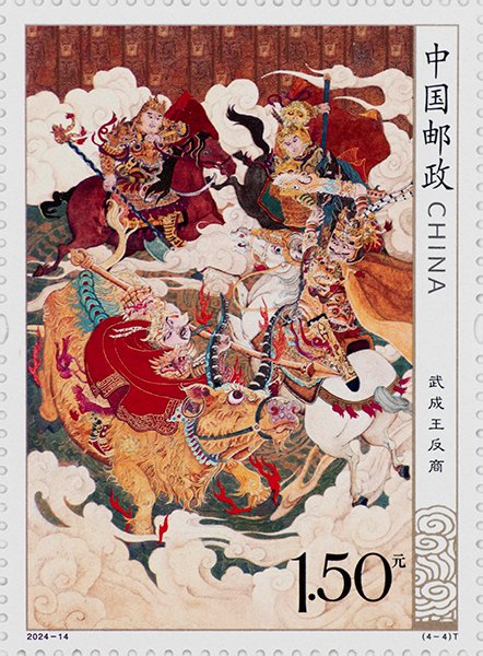 中國郵政定于2024年7月13日發(fā)行《封神演義(一)》特種郵票1套4枚,小型張1枚,郵票圖案名稱為蘇妲己進宮、雷震子救父、周文王訪賢、武成王反商,小型張圖案名稱為哪吒鬧東海。全套郵票面值11.10元。郵票計劃發(fā)行數(shù)量為套票686.45萬套,版式二83.15萬版,小型張530.2萬枚。