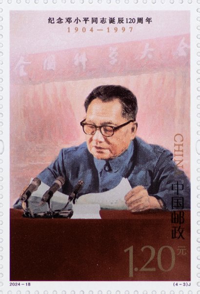 中國(guó)郵政定于2024年8月22日發(fā)行《紀(jì)念鄧小平同志誕辰120周年》紀(jì)念郵票1套4枚,郵票圖案名稱為:1.勤工儉學(xué);2.戎馬歲月;3.科學(xué)春天;4.改革開(kāi)放。全套郵票面值4.80元,計(jì)劃發(fā)行數(shù)量套票700萬(wàn)套,版式二88萬(wàn)版。