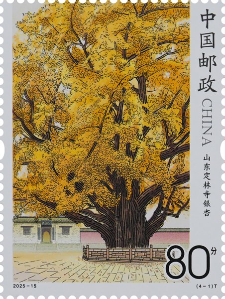 中國(guó)郵政定于2025年8月15日發(fā)行《古樹(shù)名木》特種郵票1套4枚,郵票圖案名稱為:山東定林寺銀杏、四川翠云廊劍閣柏、山西晉祠國(guó)槐、浙江普陀山普陀鵝耳櫪。全套郵票面值4.00元,計(jì)劃發(fā)行數(shù)量為470萬(wàn)套。